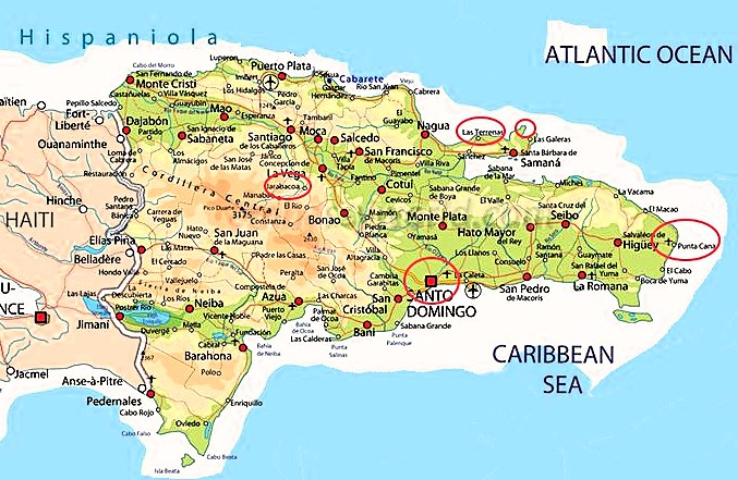 Ein paar Eindrücke vom Land. Die Dominikanische Republik hat etwa die gleiche Größe wie die Schweiz und fast ebenso hohe Berge (bis über 3000m). Hier wurde die erste Kirche des amerikanischen Kontinents errichtet.